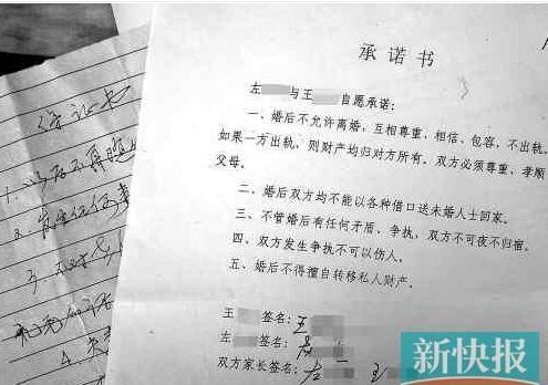 女友威胁吴先生,不签这份婚前保证书就不结婚!一方面,吴先生真心爱女友,一心一意想跟女友过一辈子。另一方面,也担心女友犯浑不结婚。纠结了许久后,还是签下了这份保证书。