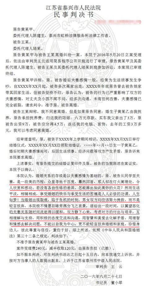 记者了解到,写这份判决书的人叫王云,是泰兴法院的一名80后审判员。